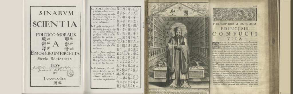 - Confucius sinarum philosophus (1687), University of Sydney Library, Rare Books and Special Collections (Shelf mark: RB 3687.1). Sinarum scientia politico moralis (1687), front page and first page, anastatic reprint, Giuseppe Dossetti Library, Bologna (Shelf mark: ARMA I P01).