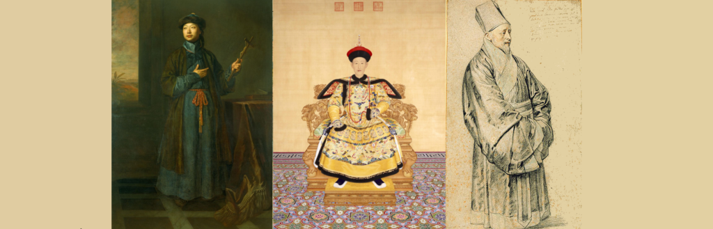 - From left to right: Portrait of Michael Alphonsius Shen Fu-Tsung SJ by Sir Godfrey Kneller (1687), Royal Collection, Windsor; Portrait of Emperor Qianlong by Giuseppe Castiglione SJ (1736), The Cleveland Museum of Art, Cleveland; Portrait of Nicholas Trigault by Paul Rubens (1617), The Metropolitan Museum of Art, New York, Wikipedia Commons, Public Domain.